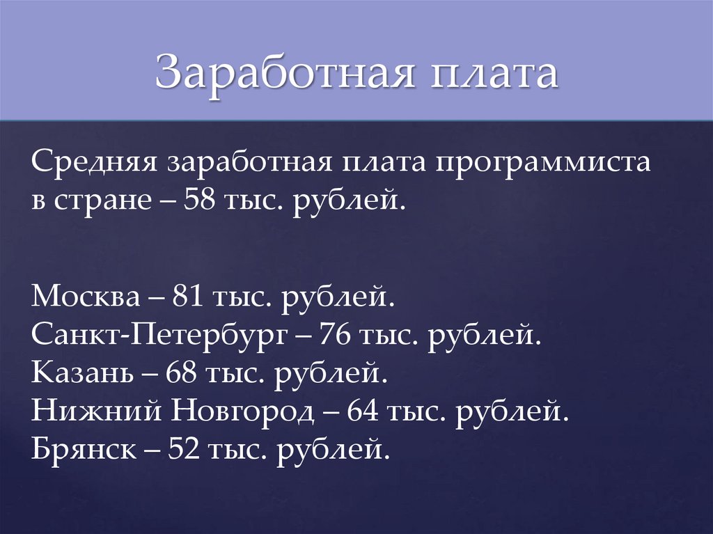 Заработная платаСредняя заработная плата программиста