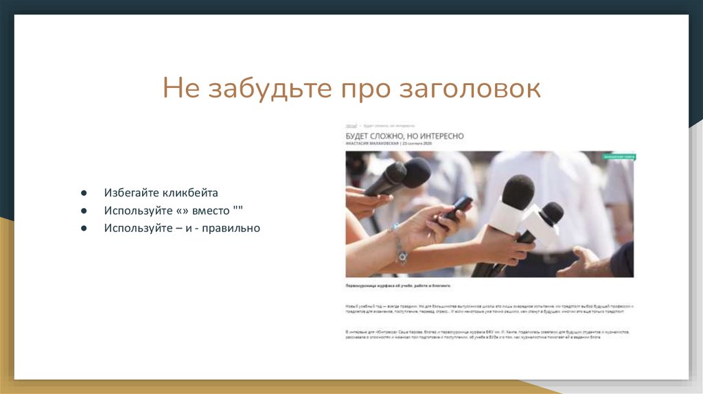 Не забудьте про заголовокИзбегайте кликбейта