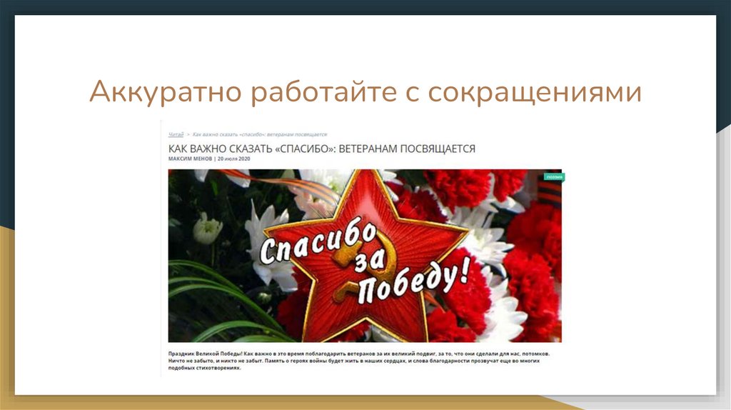 Аккуратно работайте с сокращениями10.