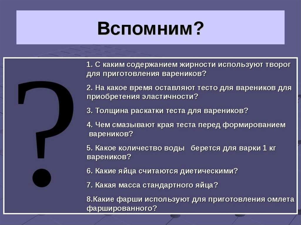 Приготовление блюд из яиц и творога