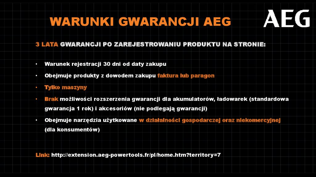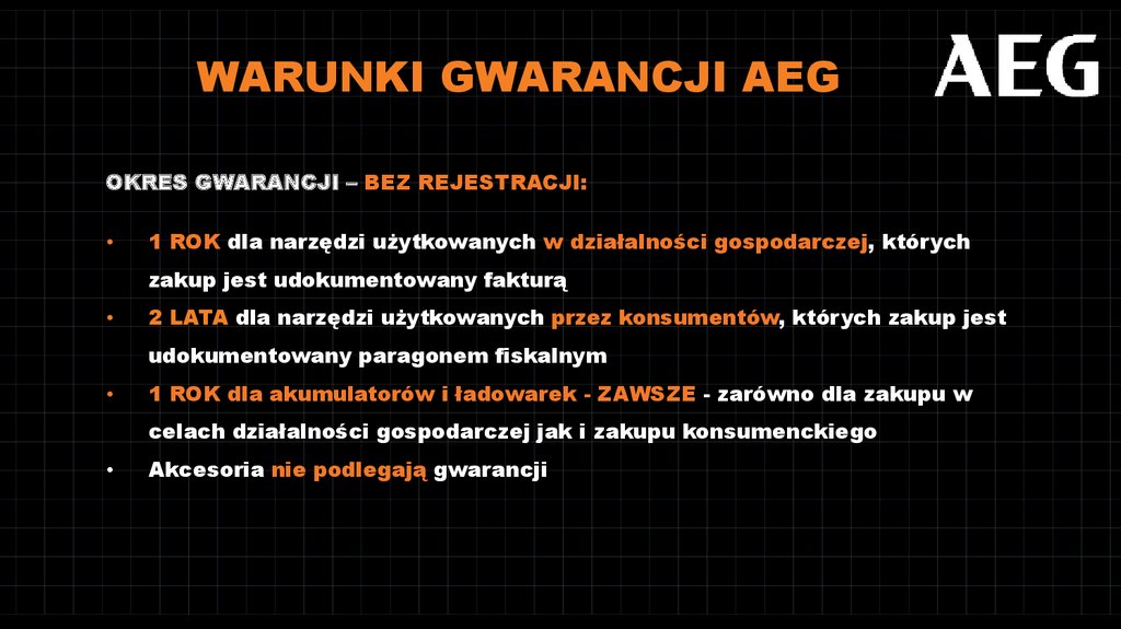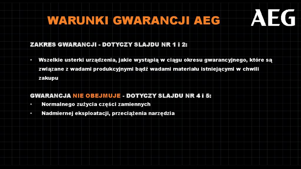 WARUNKI GWARANCJI AEGZAKRES GWARANCJI - DOTYCZY SLAJDU NR 1 i 2: