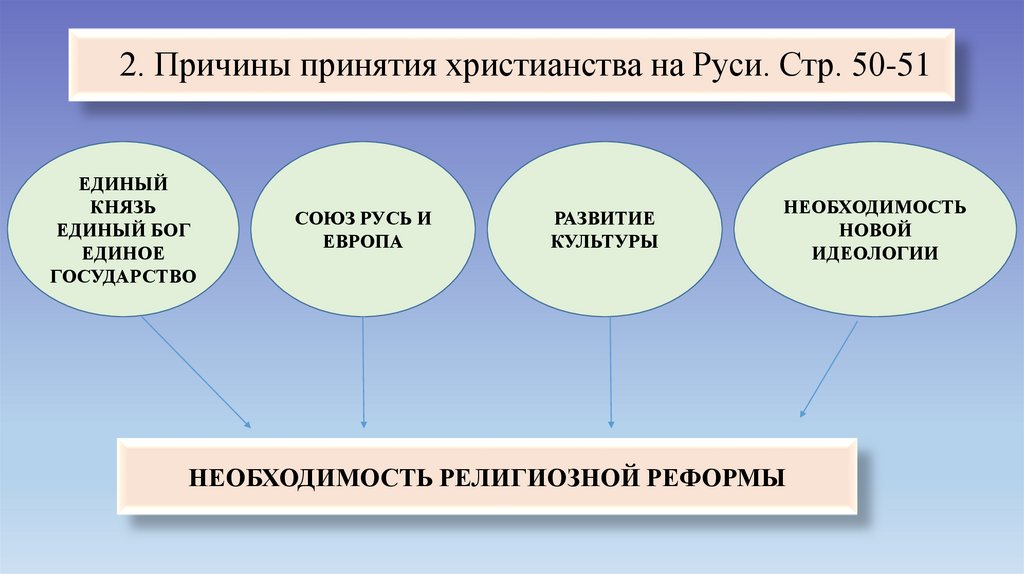 2. Причины принятия христианства на Руси. Стр. 50-51ЕДИНЫЙ