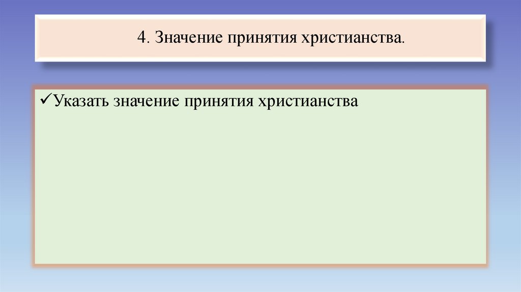 4. Значение принятия христианства.Указать значение принятия христианства