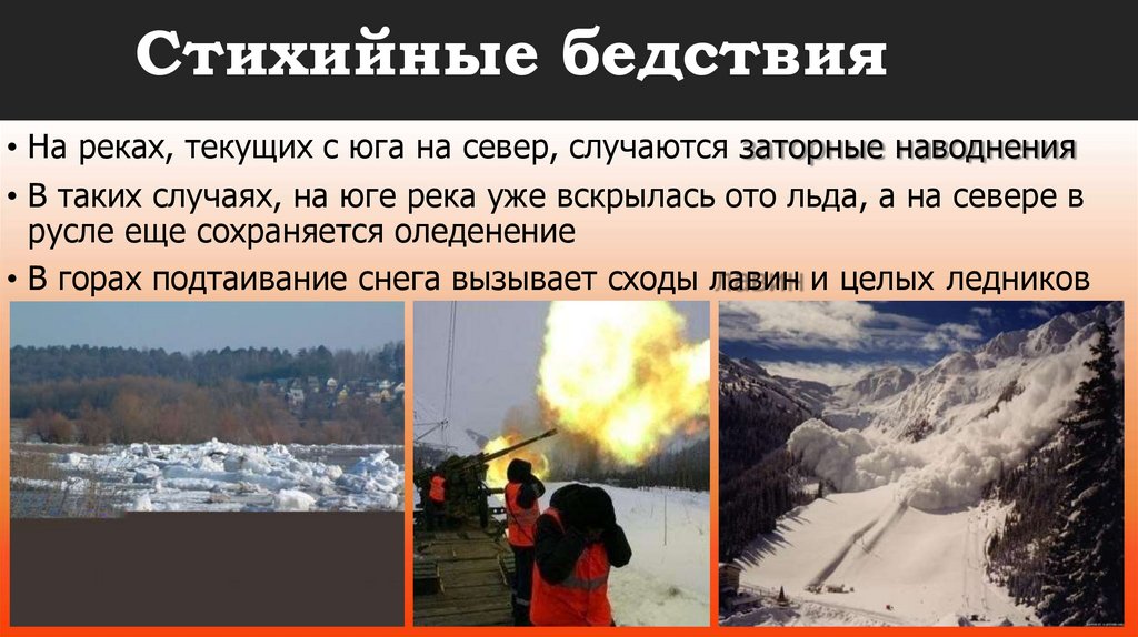 Стихийные бедствия• На реках, текущих с юга на север, случаются заторные наводнения