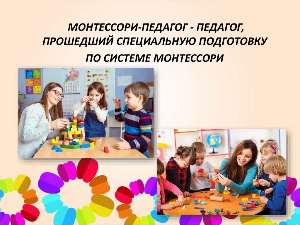 МОНТЕССОРИ-ПЕДАГОГ - ПЕДАГОГ,ПРОШЕДШИЙ СПЕЦИАЛЬНУЮ ПОДГОТОВКУ