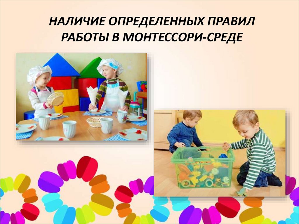НАЛИЧИЕ ОПРЕДЕЛЕННЫХ ПРАВИЛРАБОТЫ В МОНТЕССОРИ-СРЕДЕ