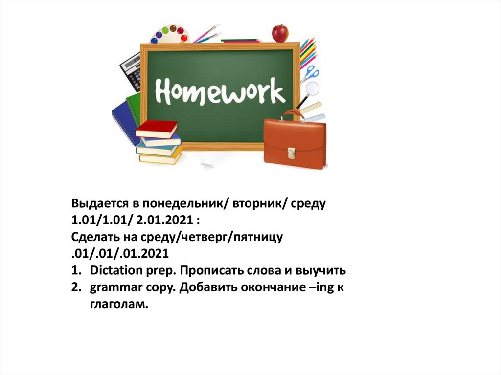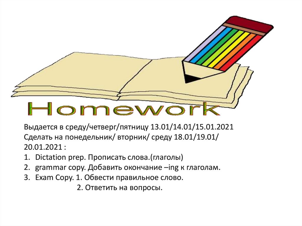 Выдается в среду/четверг/пятницу 13.01/14.01/15.01.2021Сделать на понедельник/ вторник/ среду 18.01/19.01/