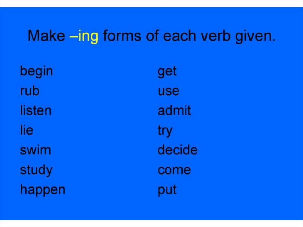 2. grammar copy. Добавить окончание –ing к глаголам.
