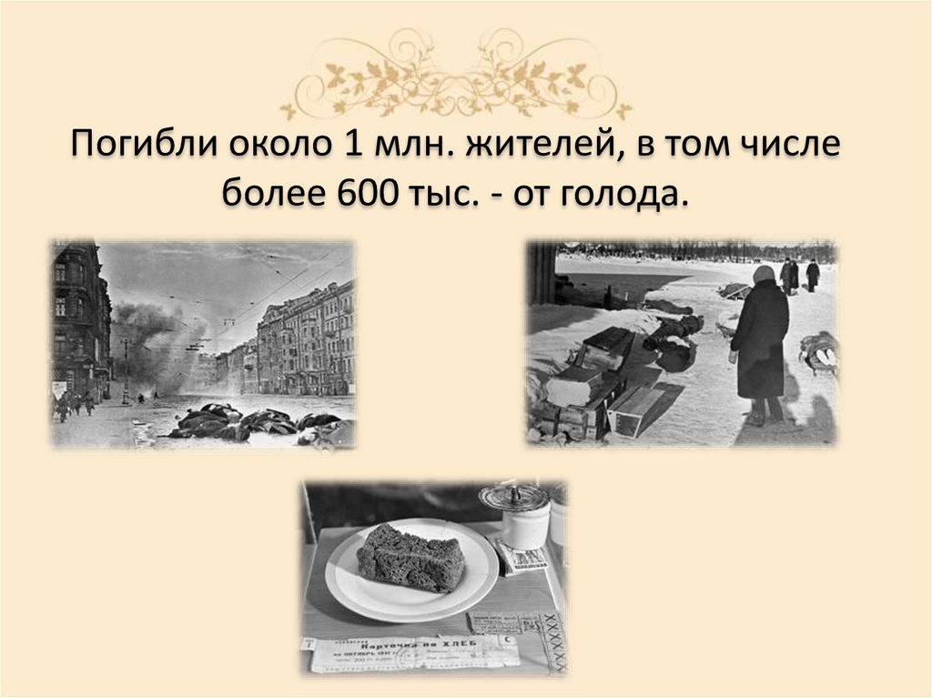 Погибли около 1 млн. жителей, в том числеболее 600 тыс. - от голода.