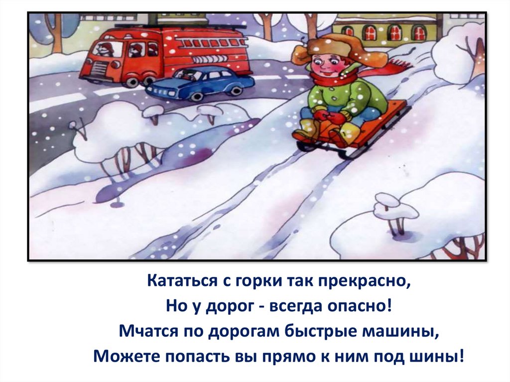 Кататься с горки так прекрасно,Но у дорог - всегда опасно!