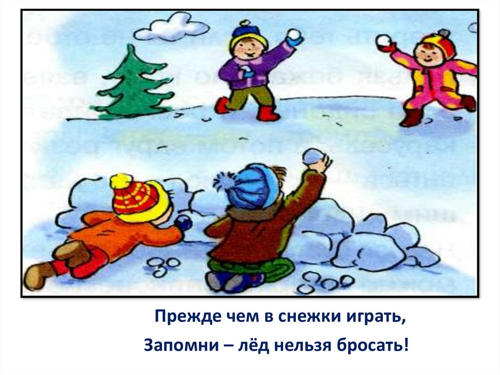 Прежде чем в снежки играть,Запомни – лёд нельзя бросать!