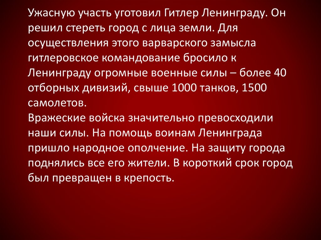 Ужасную участь уготовил Гитлер Ленинграду. Онрешил стереть город с лица земли. Для