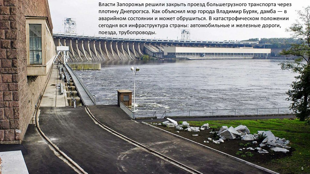 Власти Запорожья решили закрыть проезд большегрузного транспорта черезплотину Днепрогэса. Как объяснил мэр города Владимир Буряк, дамба — в
