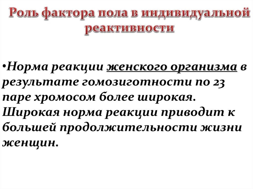 •Норма реакции женского организма врезультате гомозиготности по 23