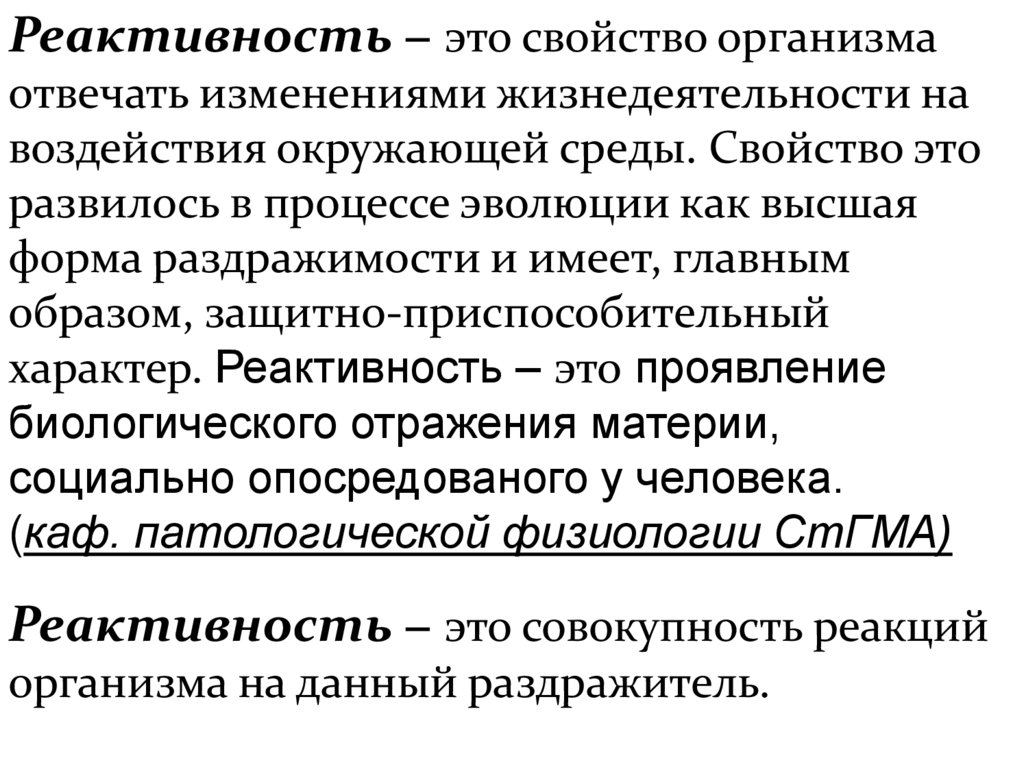 Реактивность − это способность организма определеннымобразом реагировать на воздействия окружающей среды.