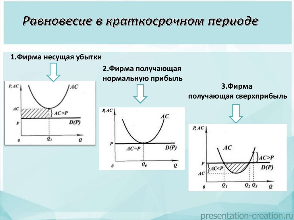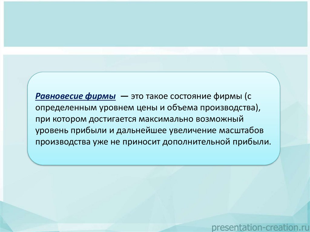 Равновесие фирмы — это такое состояние фирмы (сопределенным уровнем цены и объема производства),