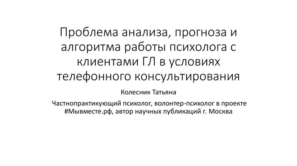 Проблема анализа, прогноза и алгоритма работы психолога с клиентами ГЛ