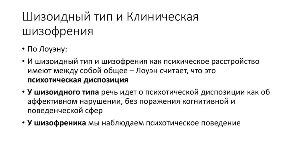 • У шизоидного типа речь идет о психотической диспозиции как об
