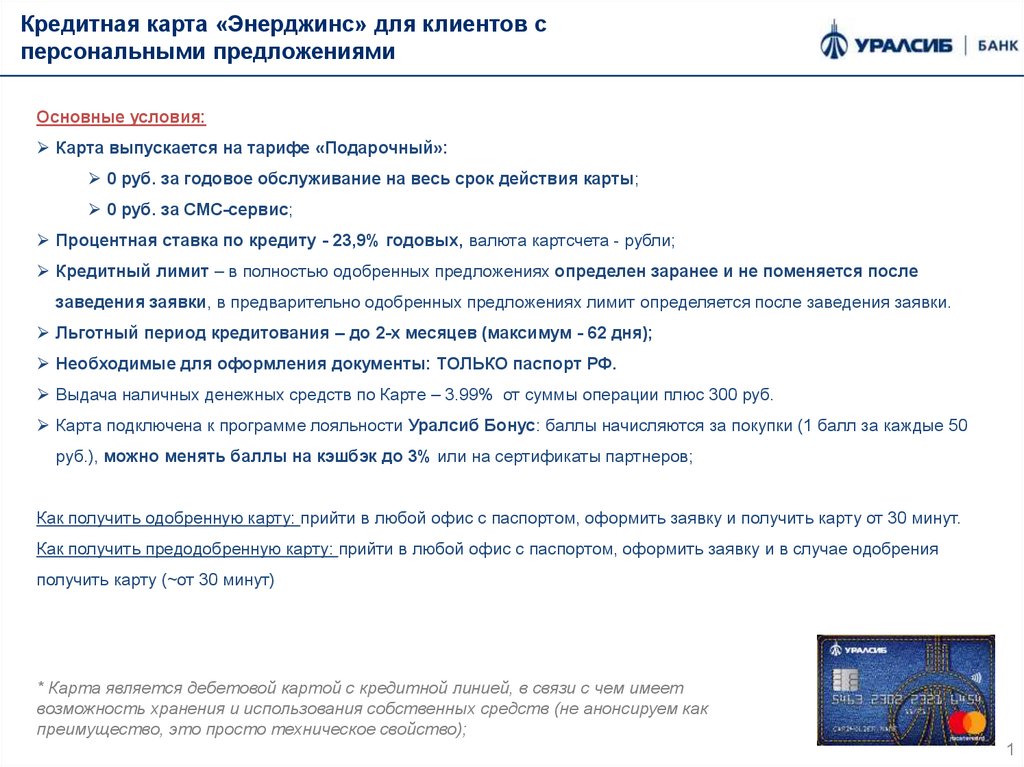 Кредитная карта «Энерджинс» для клиентов сперсональными предложениями