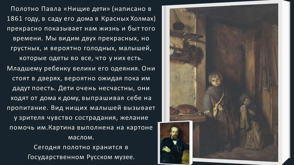 Полотно Павла «Нищие дети» (написано в1861 году, в саду его дома в Красных Холмах)