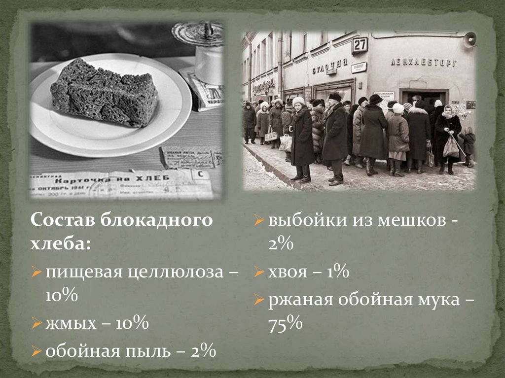 Состав блокадноговыбойки из мешков хлеба: