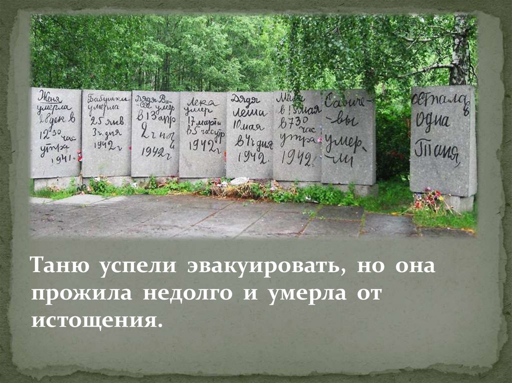Таню успели эвакуировать, но онапрожила недолго и умерла от
