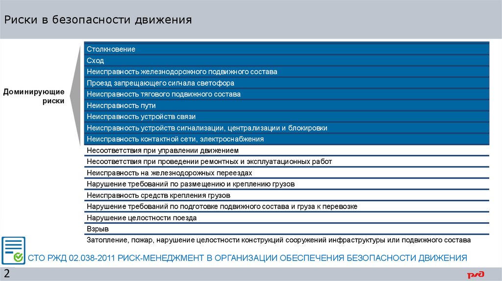 СТО РЖД 02.038-2011 РИСК-МЕНЕДЖМЕНТ В ОРГАНИЗАЦИИ ОБЕСПЕЧЕНИЯ БЕЗОПАСНОСТИ ДВИЖЕНИЯ