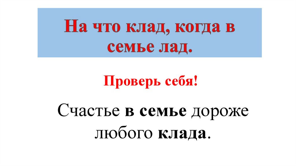 Проверь себя!Счастье в семье дороже