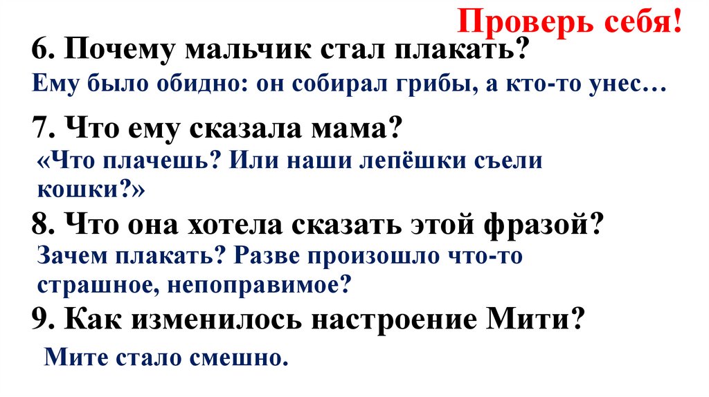 Проверь себя!6. Почему мальчик стал плакать?