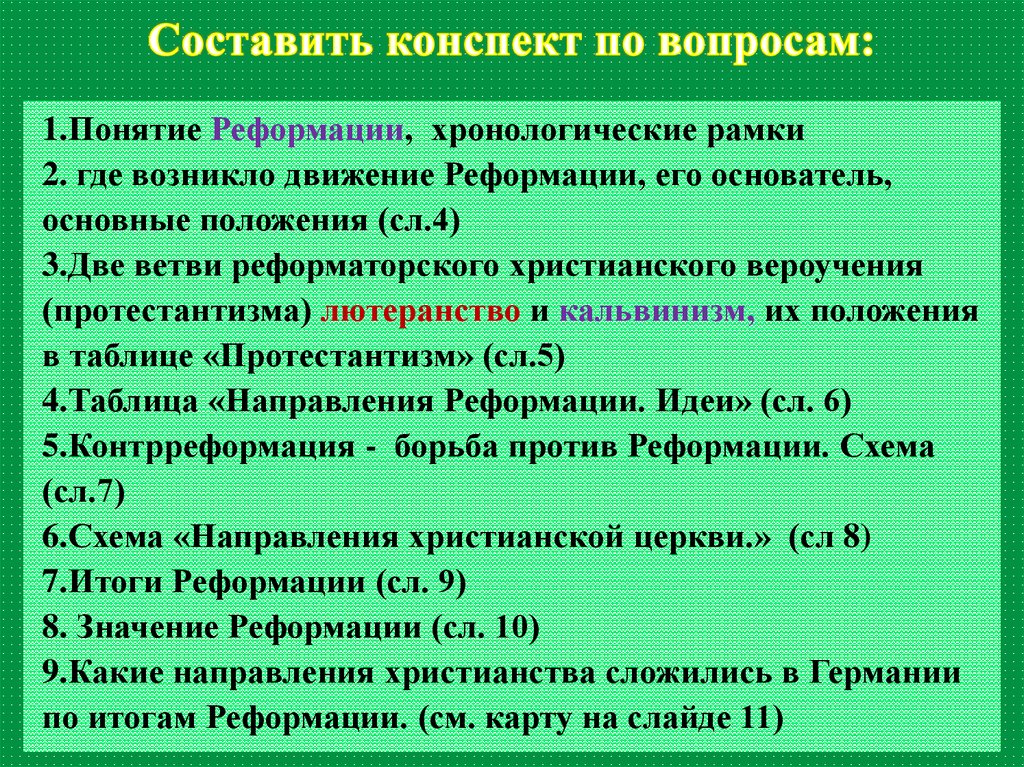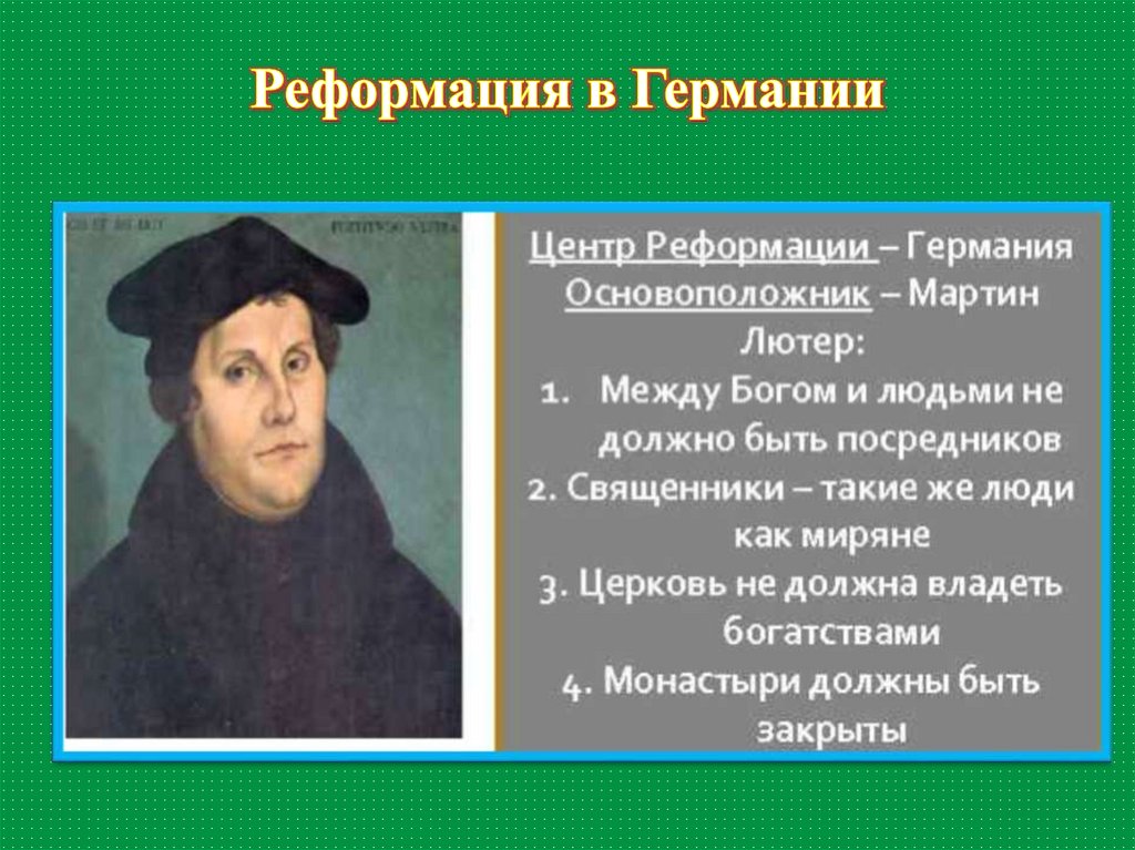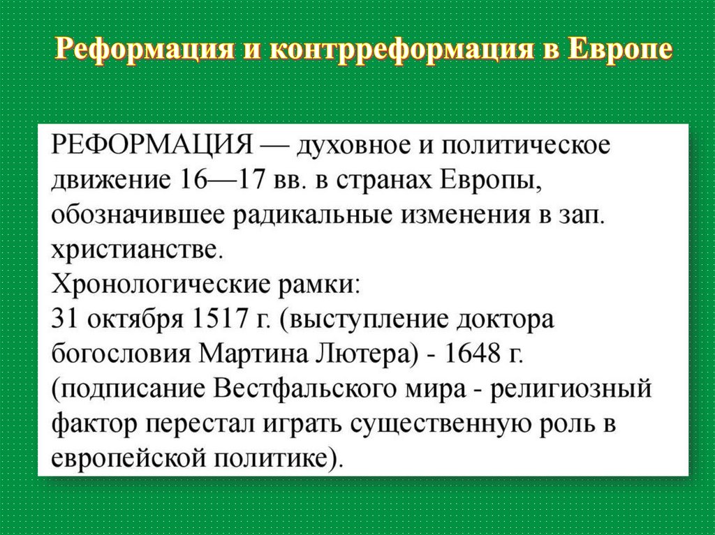 1.Понятие Реформации, хронологические рамки2. где возникло движение Реформации, его основатель,