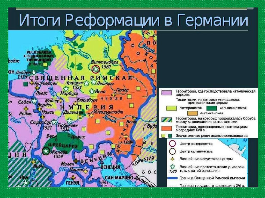 по итогам Реформации. (см. карту на слайде 11)