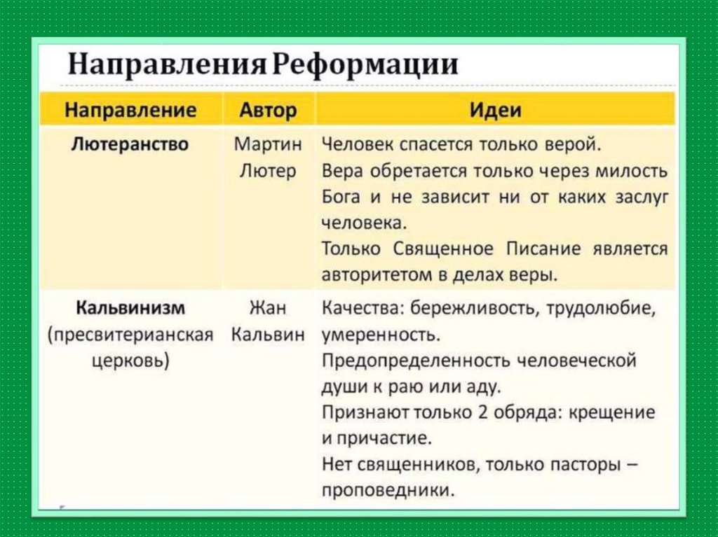 (протестантизма) лютеранство и кальвинизм, их положения
