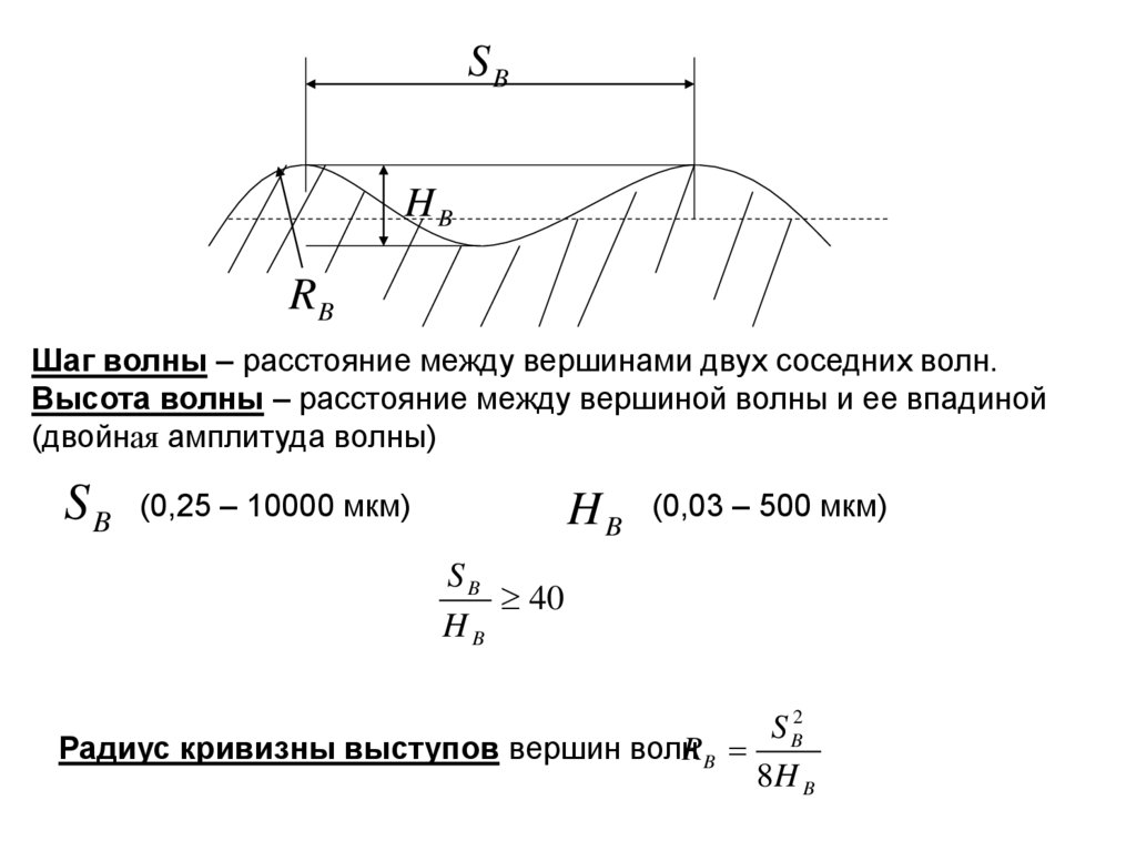 Радиус кривизны выступов вершин волн