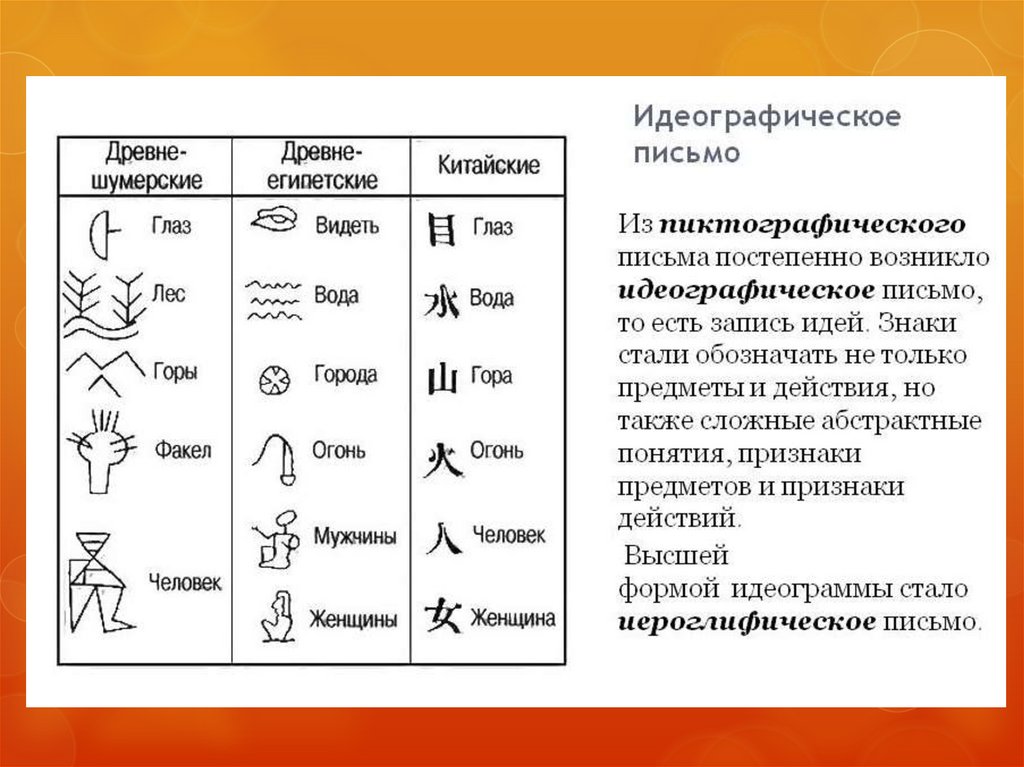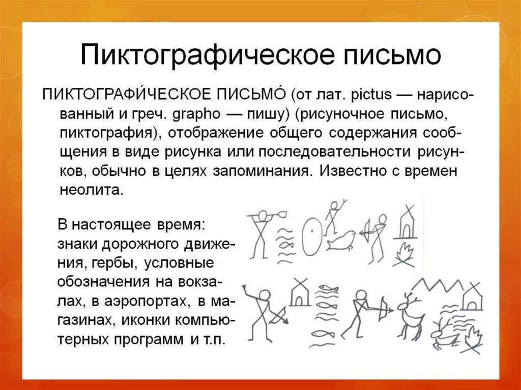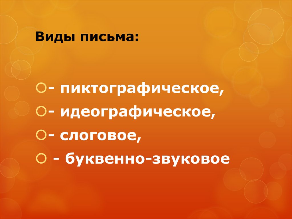 Виды письма:- пиктографическое,