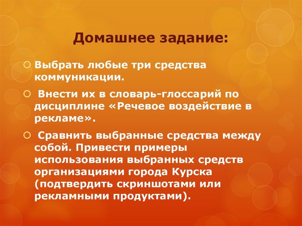 Домашнее задание:Выбрать любые три средства