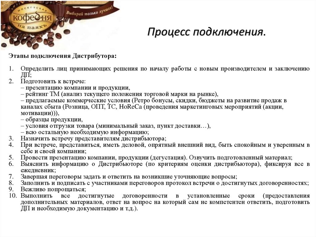 Процесс подключения.Этапы подключения Дистрибутора: