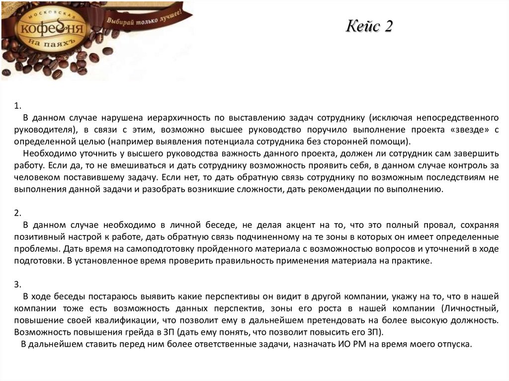 работу. Если да, то не вмешиваться и дать сотруднику возможность проявить себя, в данном случае контроль за