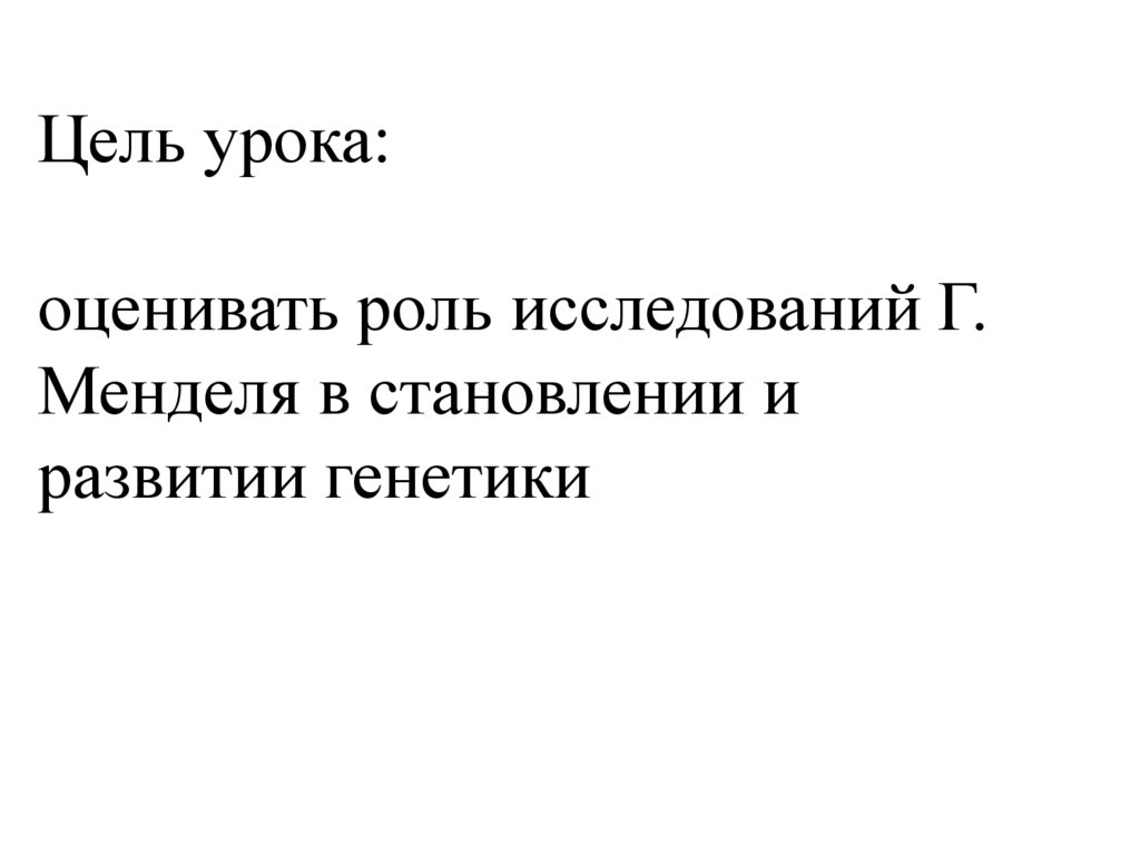 Цель урока:оценивать роль исследований Г.