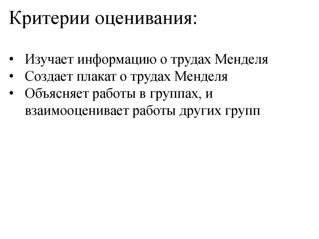 Критерии оценивания:• Изучает информацию о трудах Менделя