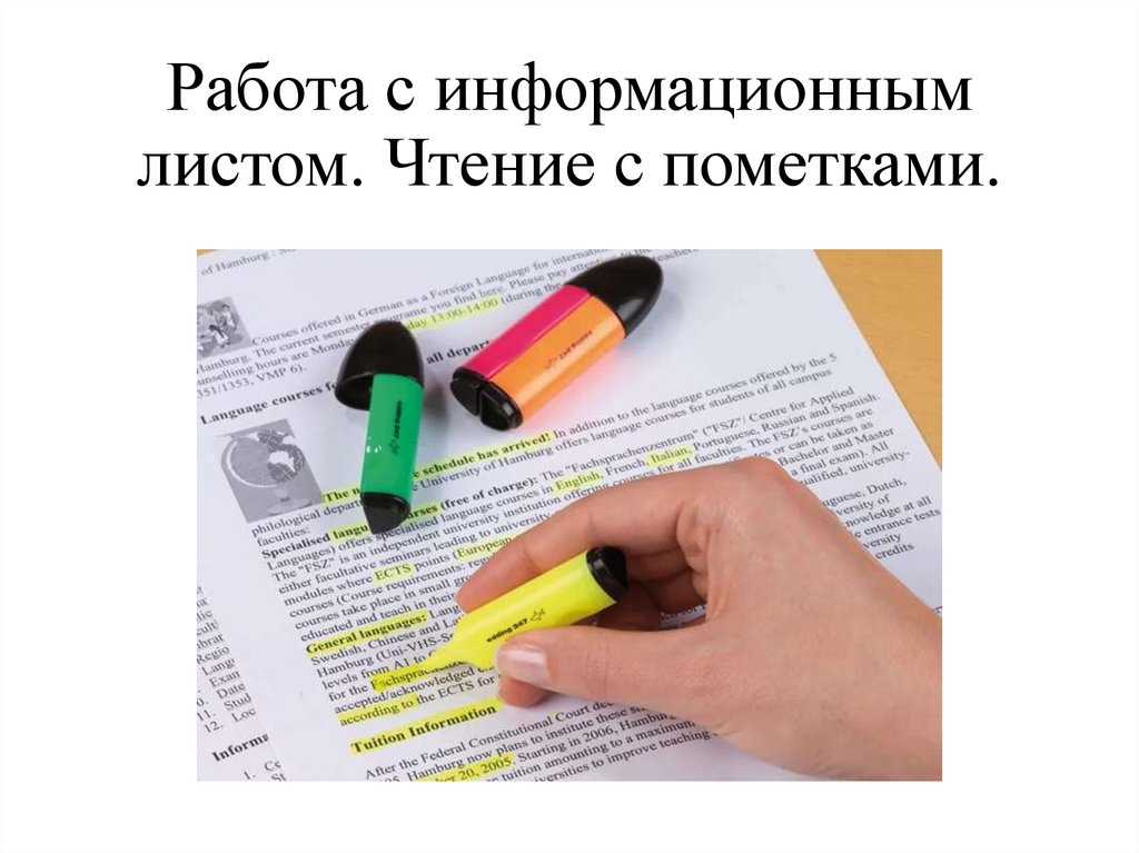 Работа с информационнымлистом. Чтение с пометками.