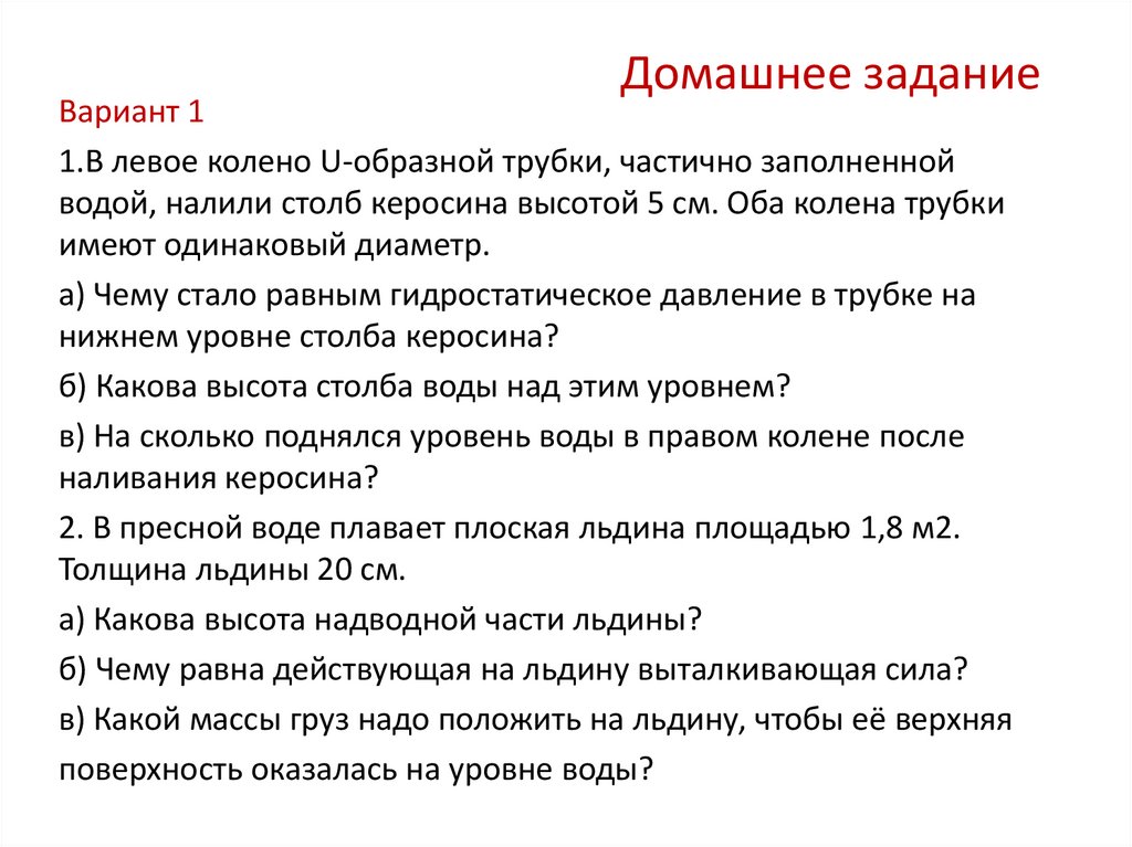 Элементы механики жидкости. Давление в жидкости и газе