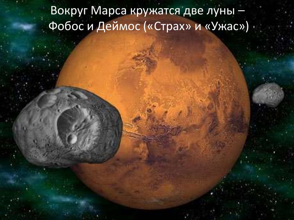 Вокруг Марса кружатся две луны –Фобос и Деймос («Страх» и «Ужас»)