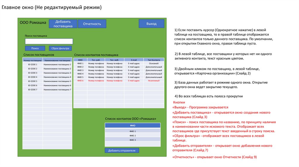 Главное окно (Не редактируемый режим)