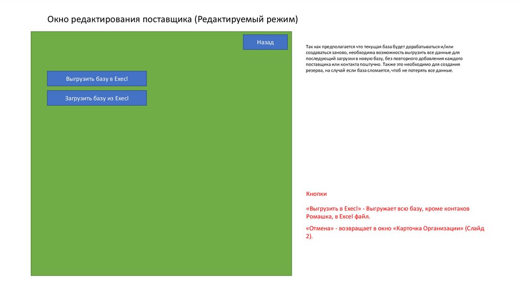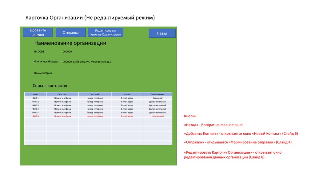 «Назад» - Возврат в окно «Карточка организации» (Слайд 2)