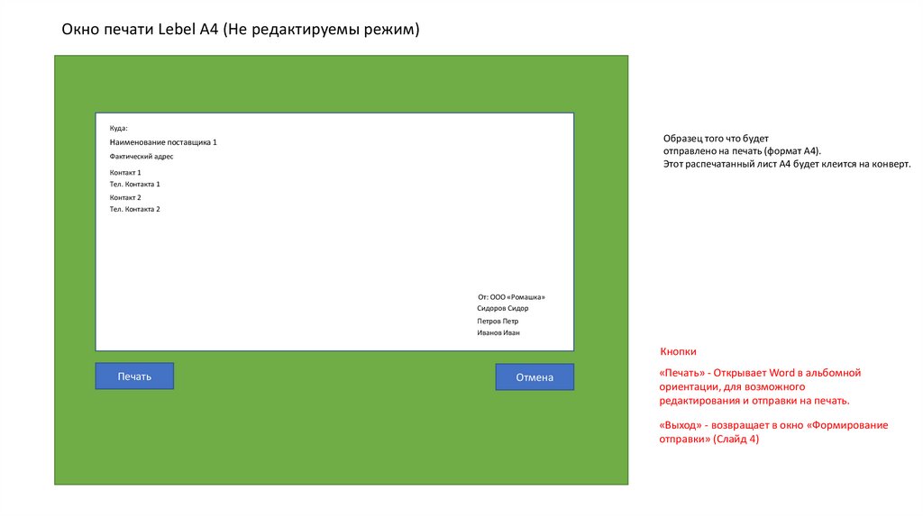 Окно печати Lebel A4 (Не редактируемы режим)Куда: