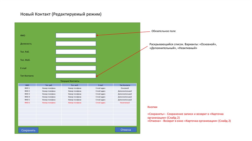 Новый Контакт (Редактируемый режим)Обязательное поле
