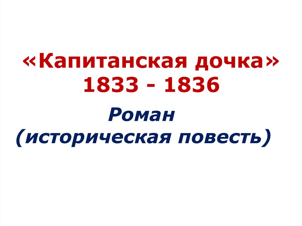 «Капитанская дочка». 1833 - 1836. Роман (историческая повесть)