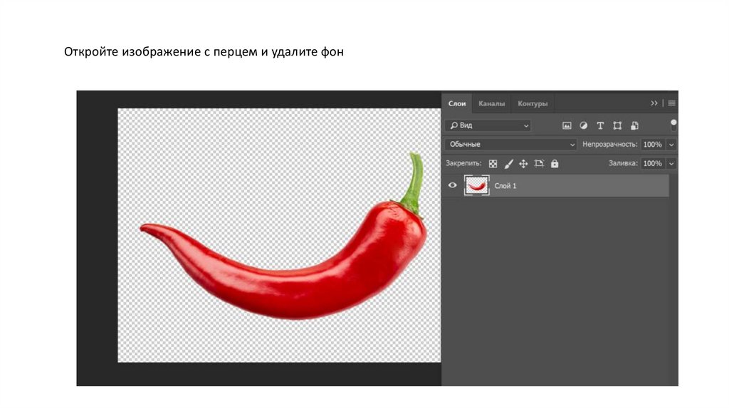 Откройте изображение с перцем и удалите фон
