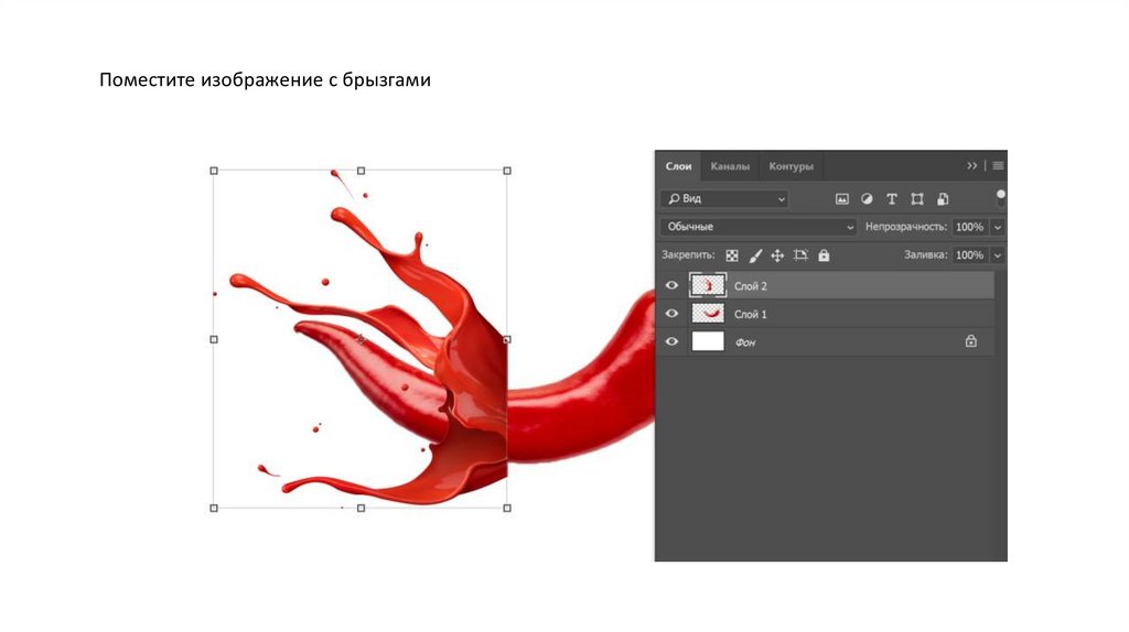 Поместите изображение с брызгами