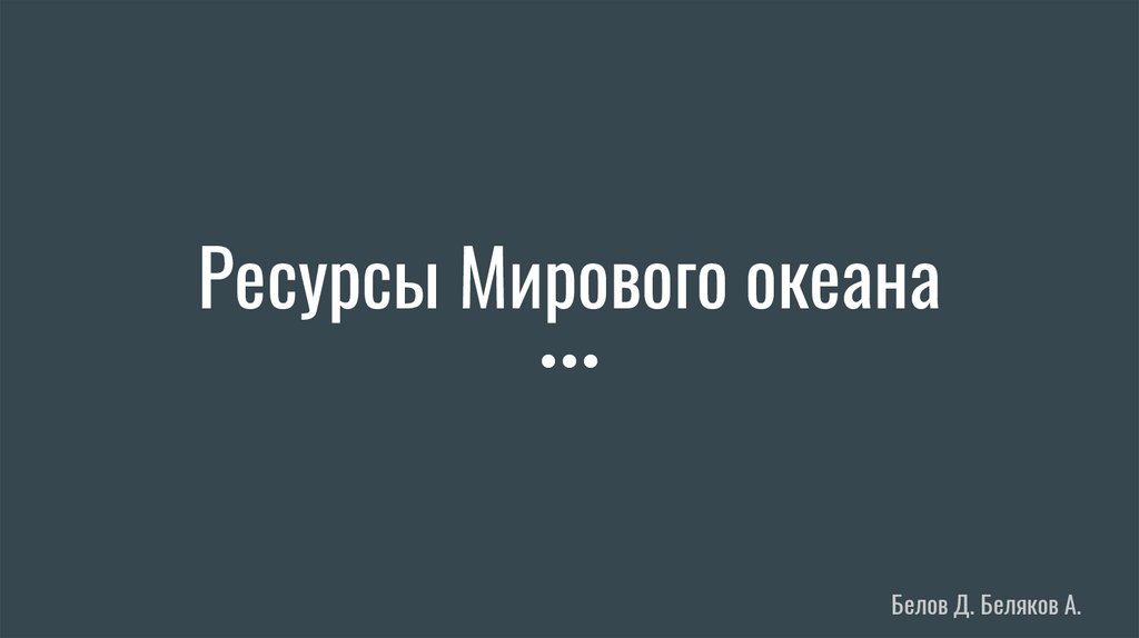 Ресурсы Мирового океанаБелов Д. Беляков А.